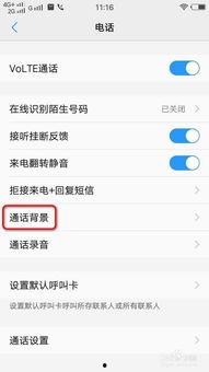 3. 选择通话背景:在通话设置页面,你会看到一个“通话背景”的选项,点击进入。